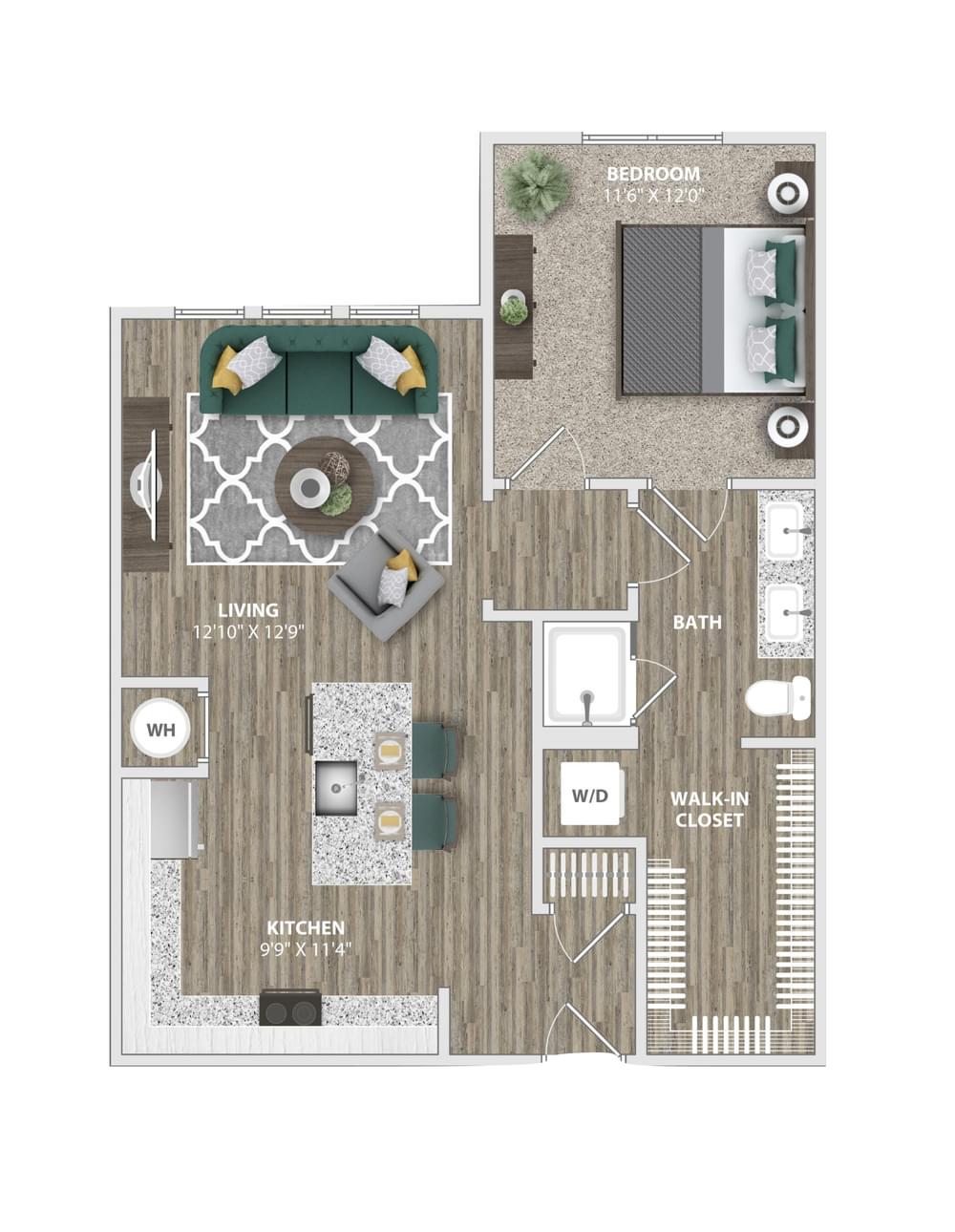 Unit Type1 Bed / 1 BathFloor Area690 sq. ft.AvailableTodayStarting at$1,272 / mo