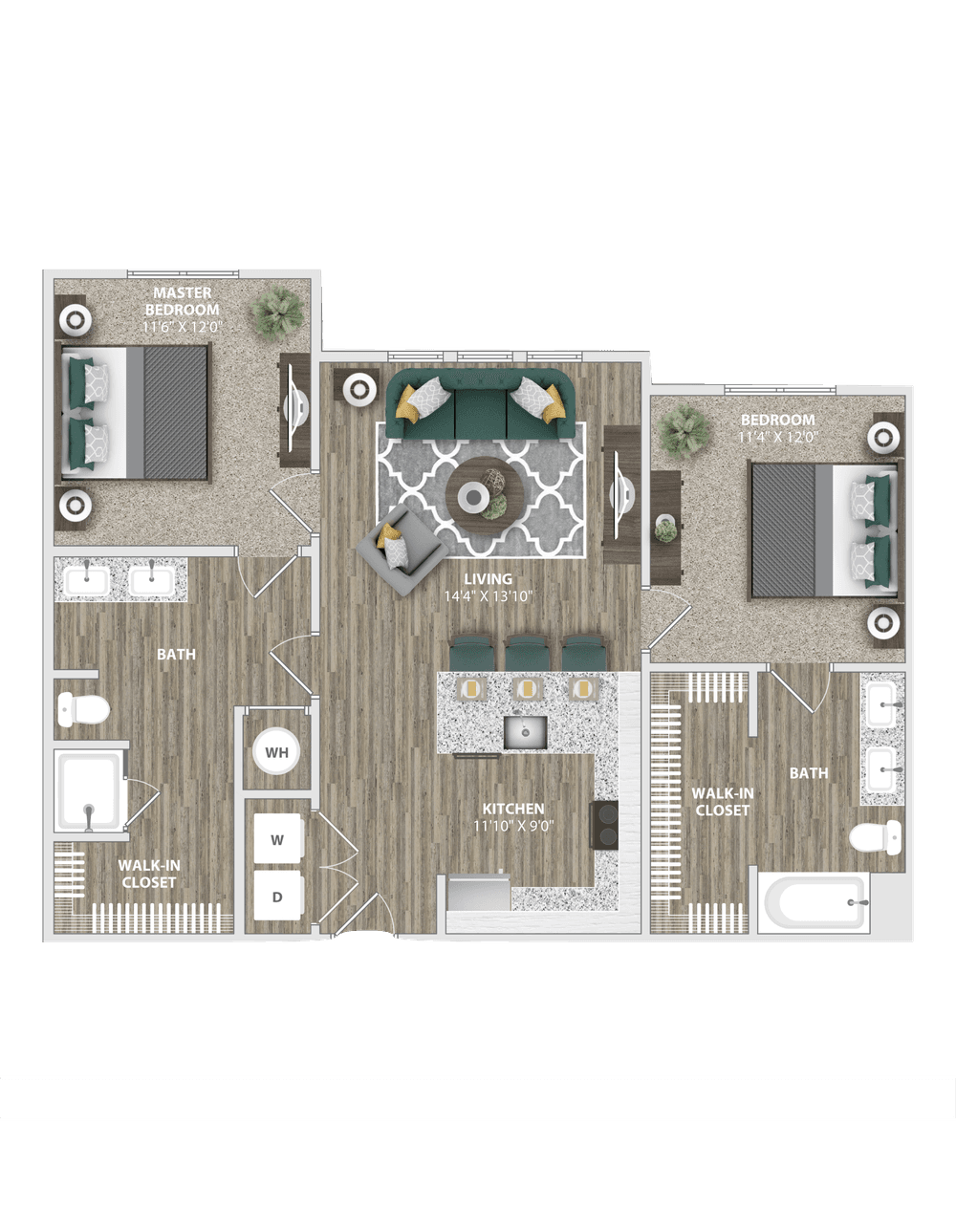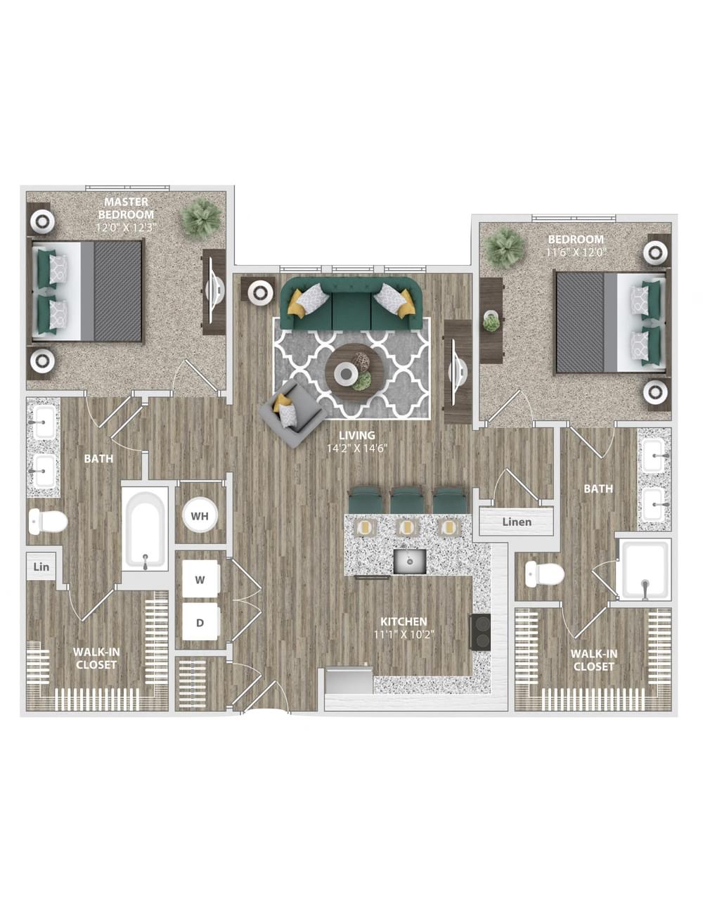 Unit Type2 Bed / 2 BathFloor Area1,106 sq. ft.AvailableTodayStarting at$1,635 / mo
