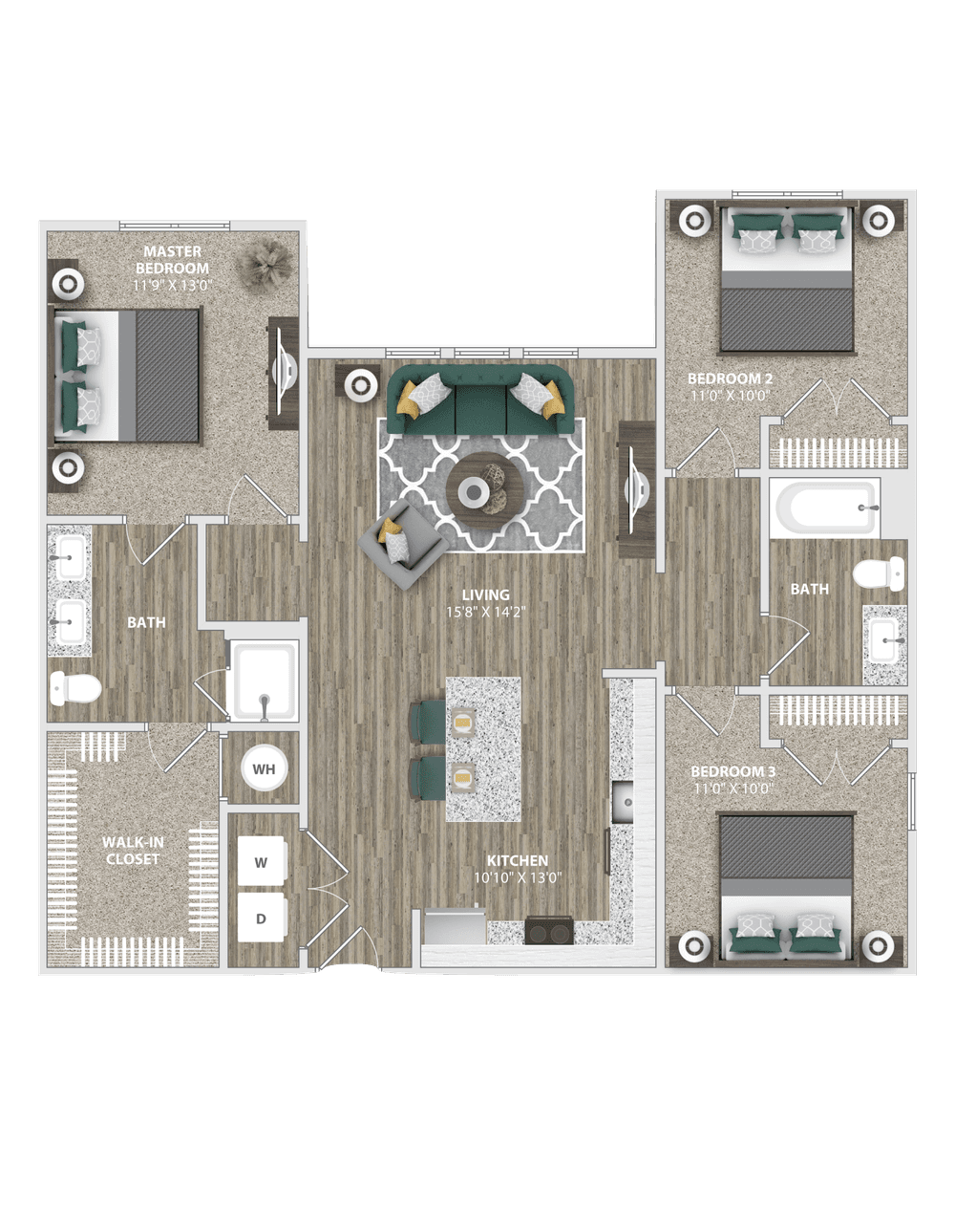 Unit Type3 Bed / 2 BathFloor Area1,224 sq. ft.AvailableTodayStarting at$1,599 / mo